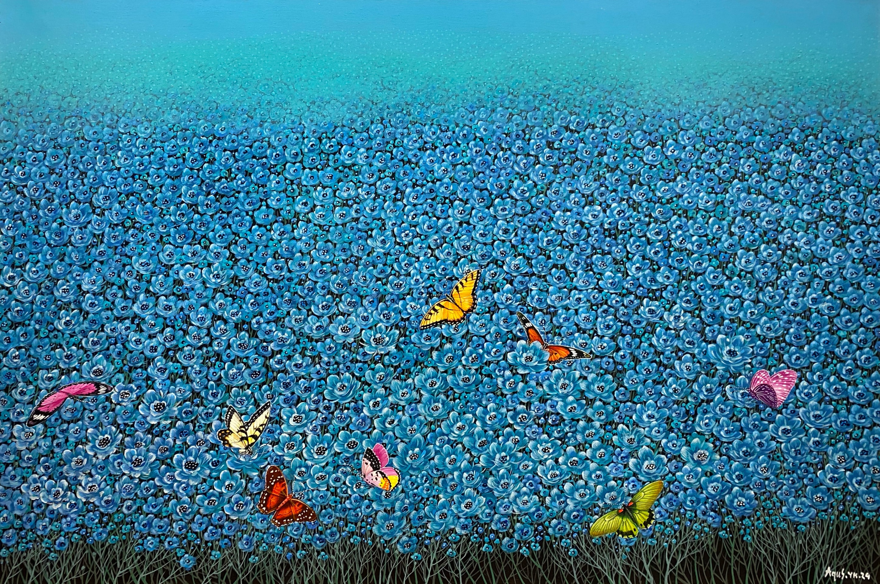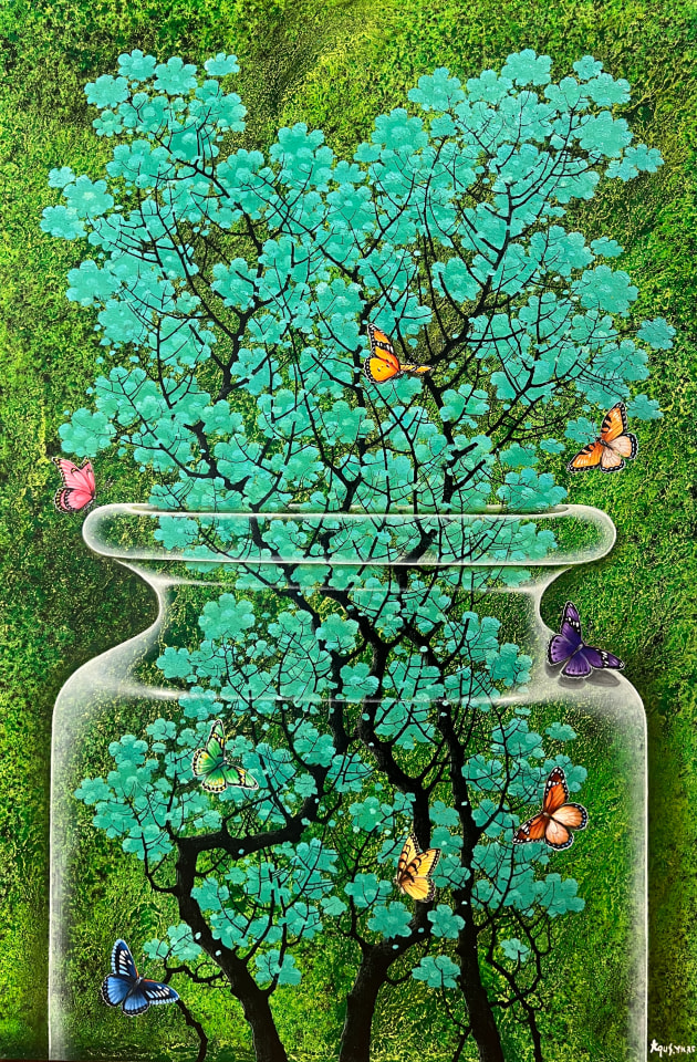 “We are what we see.” This simple phrase illuminates the origins of Agus’s creations. Born in Yogyakarta to a family with an artless background, Agus was strongly influenced by his natural surroundings. As he recalls, it was the beauty of nature itself that inspired the artist to first pick up a brush and capture his vision on canvas.