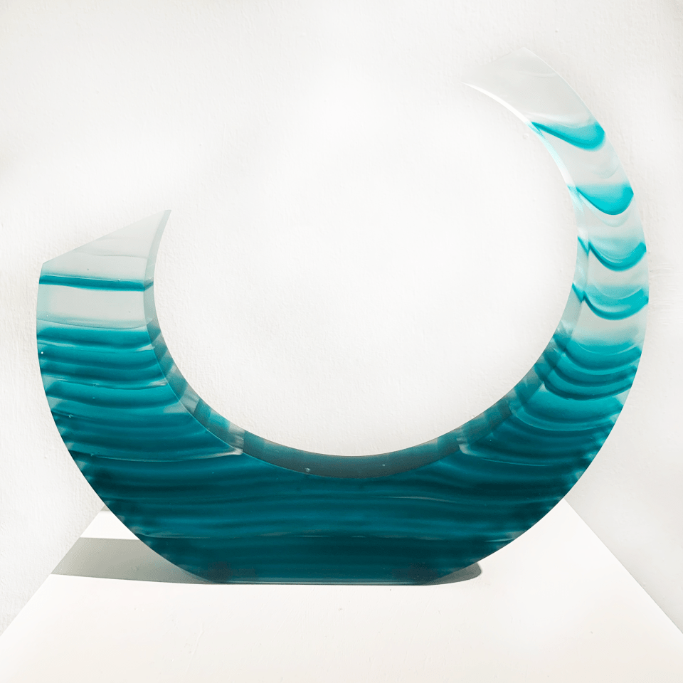 Experimentation is a large part of her practice, working with glass powders, sheet glass and billets. She enjoys the challenge of taking an idea to fruition. Whether it be an idea based on an emotional response to events in her daily life, or simply an appreciation of her natural environment, Anne’s work is often anthropomorphic. Life’s balance is also constant consideration.