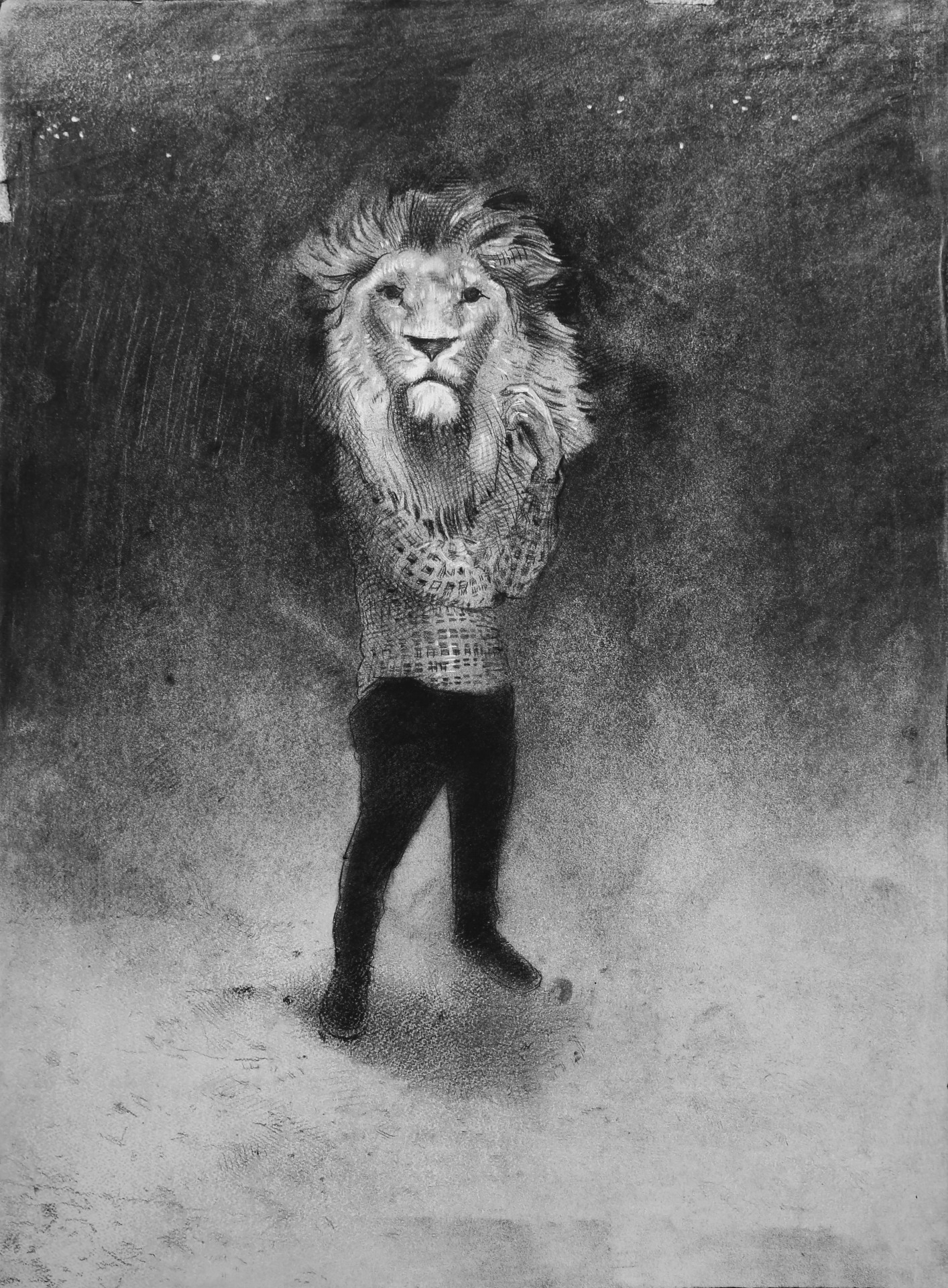 Pulvirenti's work draws on his Italian heritage. Each image is a narrative telling part of a story from the artist's emotionally charged perspective. Anton’s familial view of the Italian Australian internments of World War Two calls upon the viewer to compare the Italian experience of the war to that of introduced species/pests such as the fox and the rabbit.