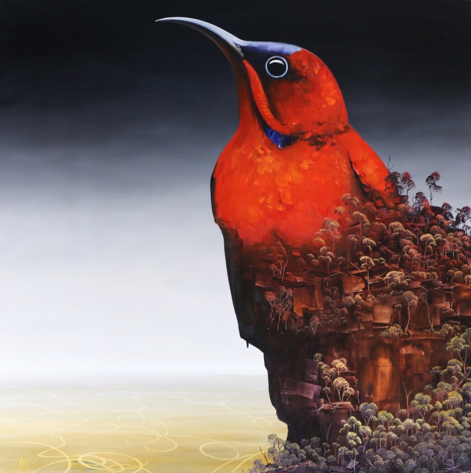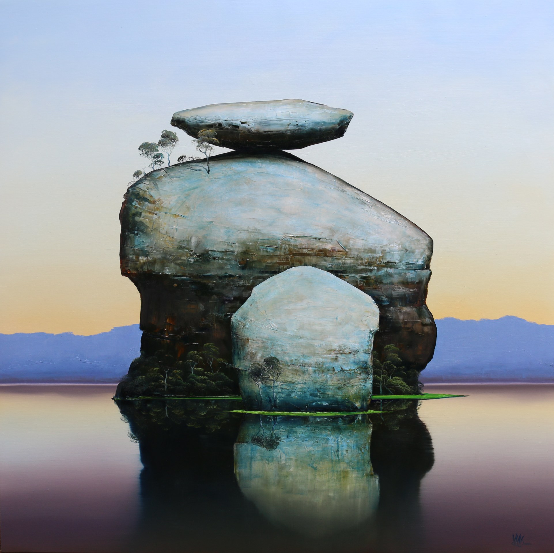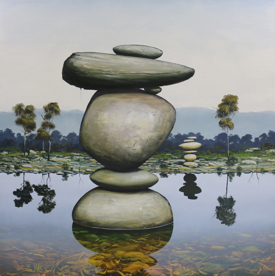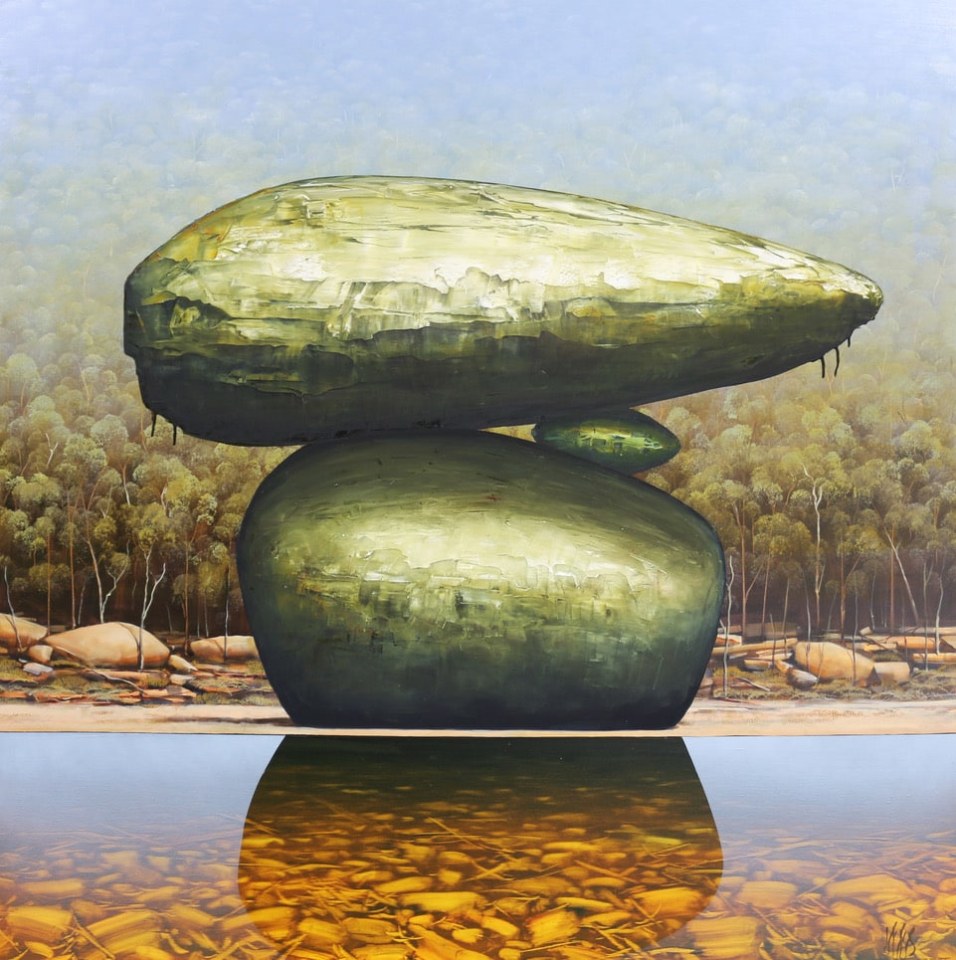 In his twenties, Lees travelled extensively throughout remote Australia, working as an opal miner. Now based in rural Victoria, his experiences of the outback unravel on the canvas in panoramic and dioramic form. Lees exaggerates space and the elements of the Australian landscape to give his paintings a theatrical effect, utilising colours as the key catalyst to create their meditative yet magnetic appearance.