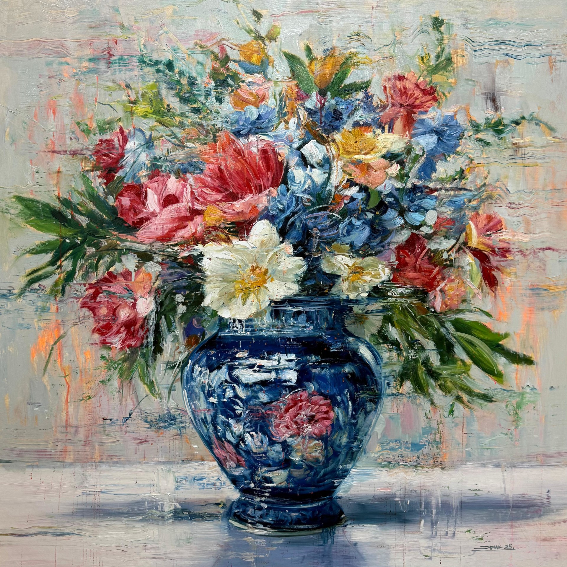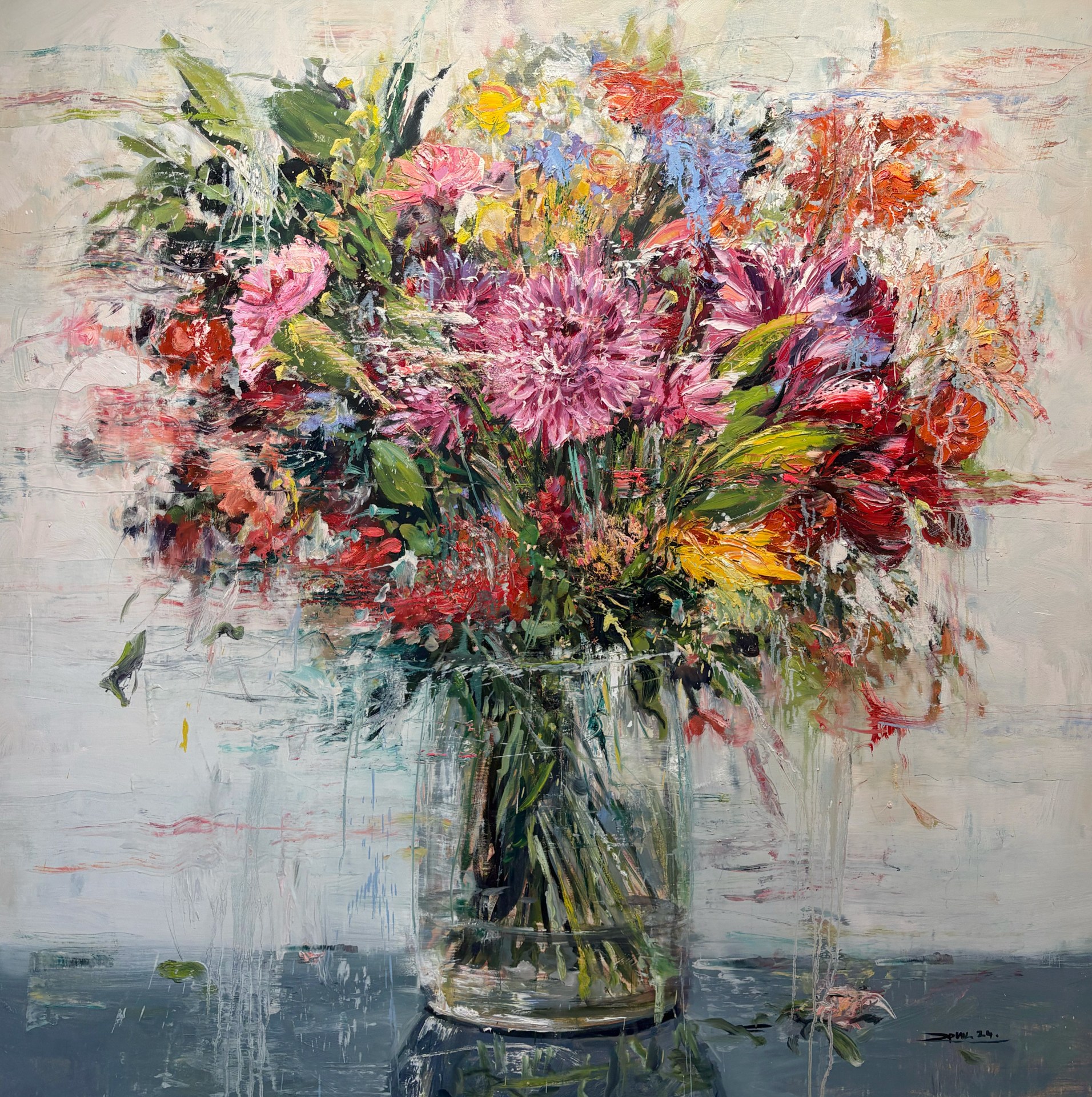His distinctive canvases are bursting with bold and expressive brushstrokes, results in mesmerizing works filled with dimensionality and movement. Alfaro is inspired by the French Impressionist movement; this is visible through his masterful play with light and his use of thickly applied paint known as ‘impasto’. These techniques combined with his chosen subject matter his gestural technique showcasing the beauty of nature produce a unique sense of tranquility and peacefulness to his work.