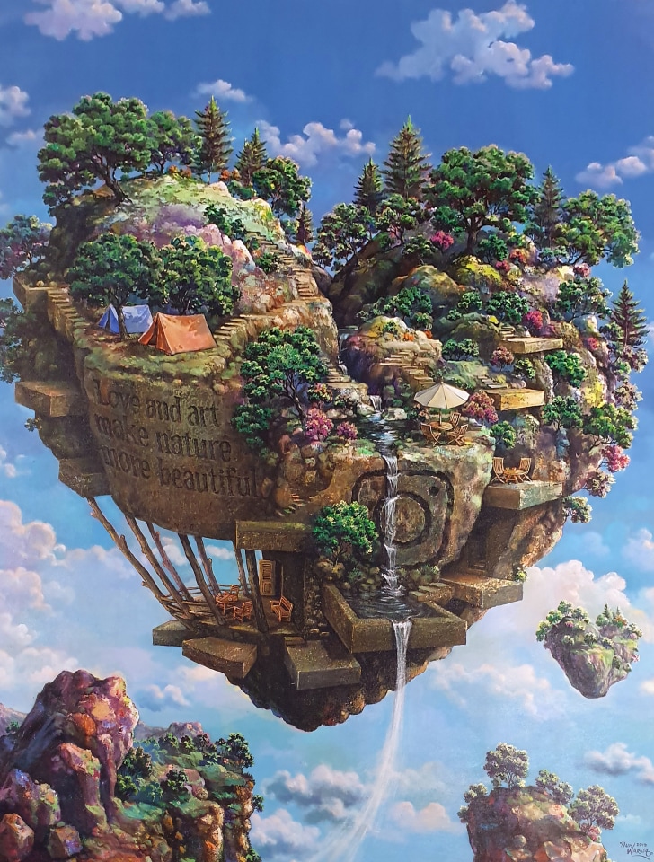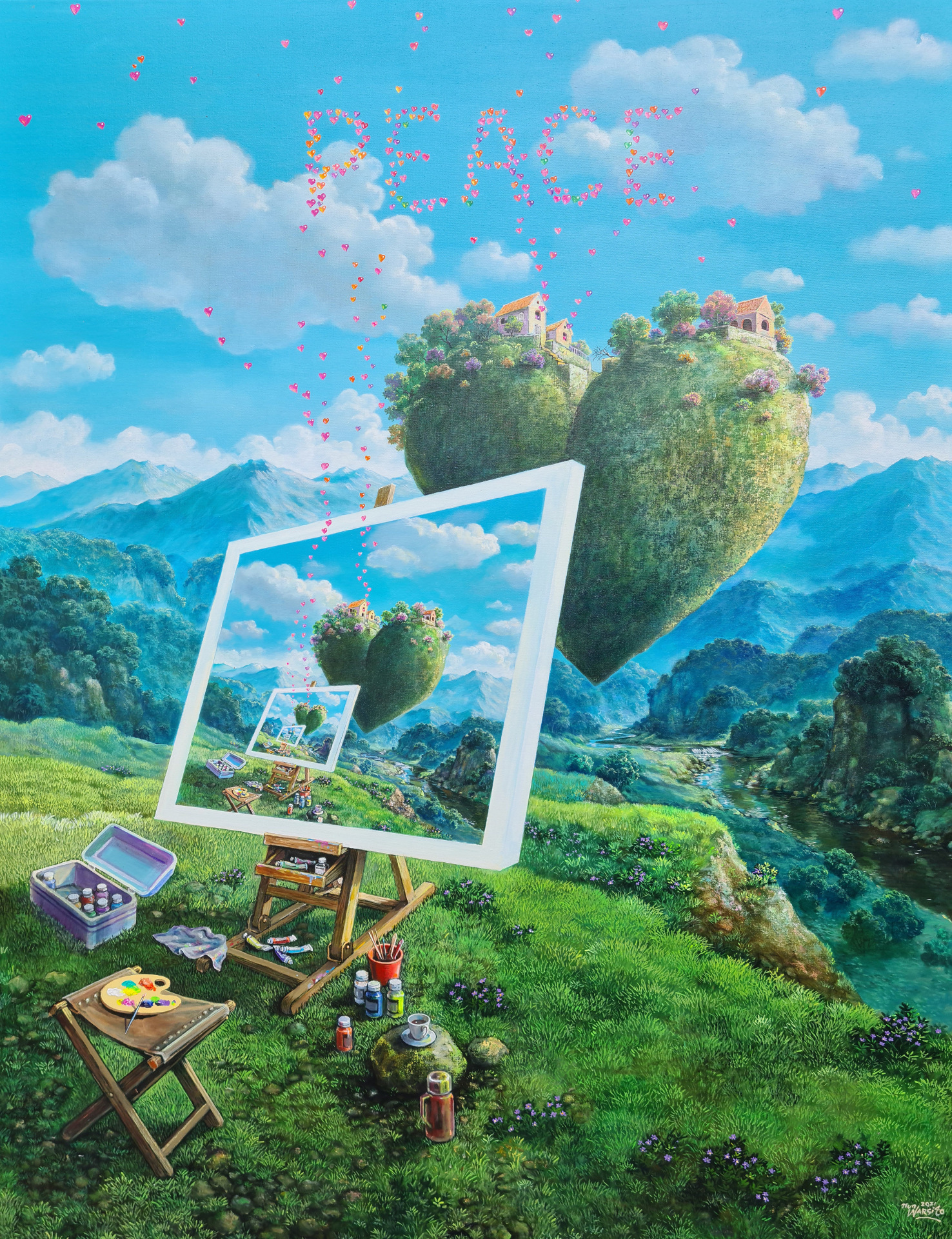 His work clearly depicts an exciting array of energy and vitality, not only in its content but also in the bright, eye-catching colors he uses. The overall effect is an intense explosion – creating a dream like fantasy.