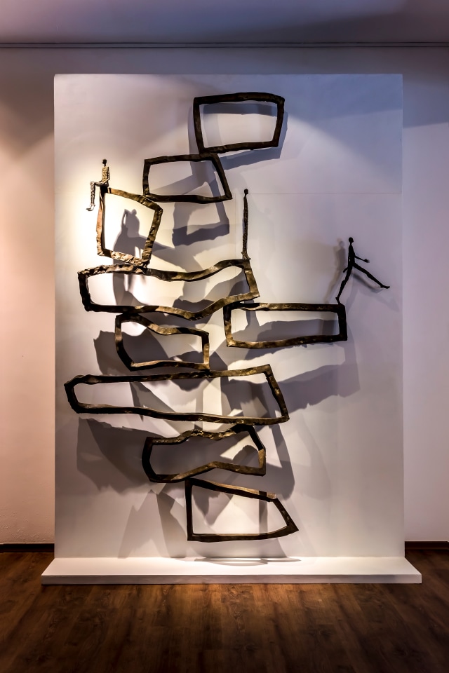 Each of Val’s sculpture is a powerful affirmation of the presence of life. In the piece Paternité (Fatherhood), for example, the work speaks about the bond, the trust between father and child, offering a window into and a portrait of that special moment. The sculpture, Une Vie (A Life), is a piece that meditates upon a life lived full of dreams and quests, hardship and suffering, questions and expectations. Drawing on her own experiences, Val created the large-scale sculpture, Attrait de la liberté (Attractiveness of Freedom), a work measuring 220cm in height. The work references her youth, a time when she felt the need to be in a linear race to always outdo her own achievements each time. But today, her quest is in the fulfillment of freedom, nourished by the idea of alternating between fullness and emptiness and constant renewal.